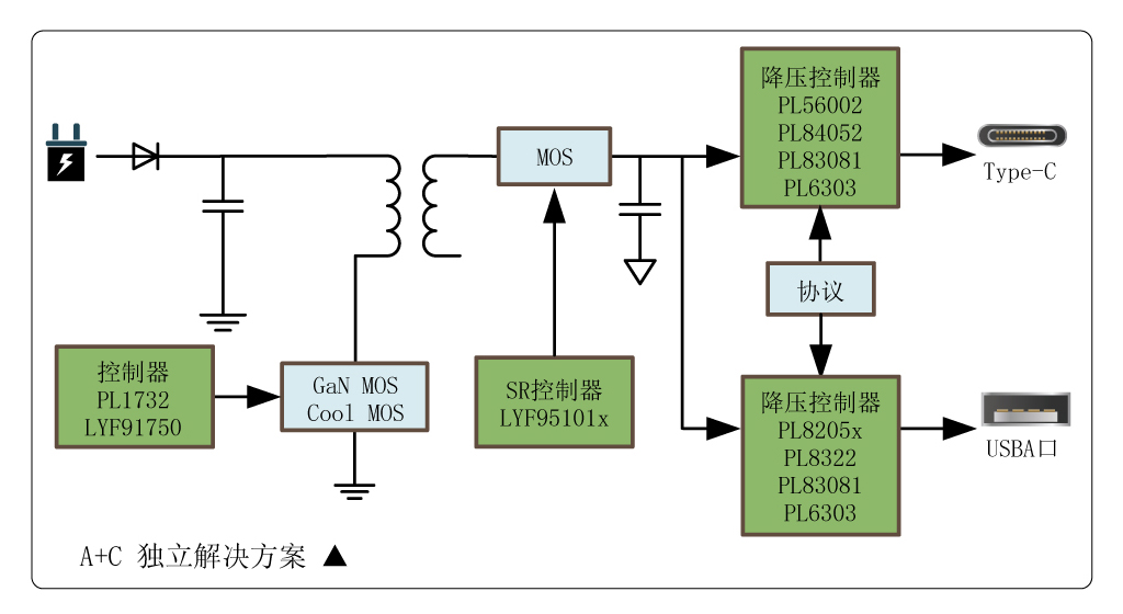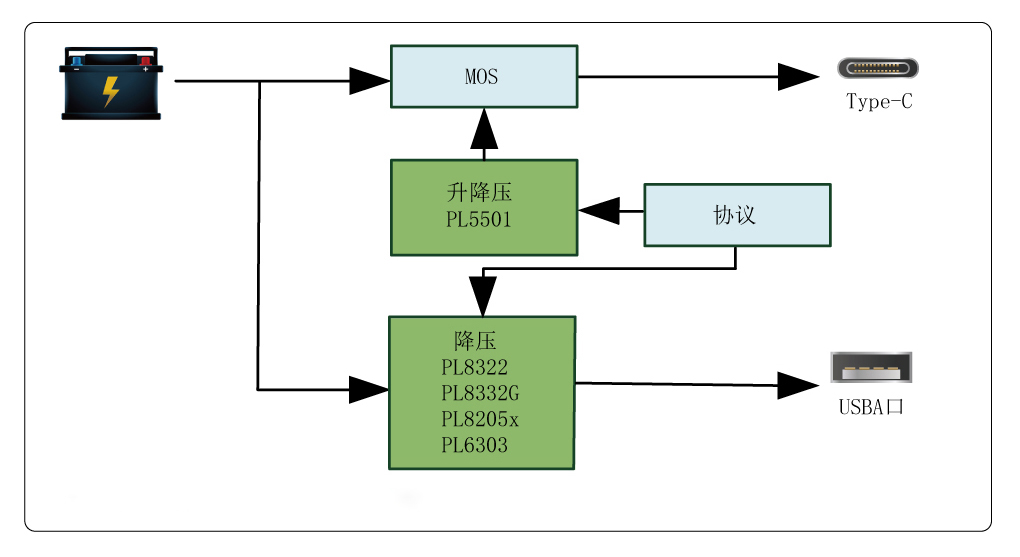 PL8322具有可配置的线路压降补偿和可配置的充电电流限制。CC/CV模式控制在恒流充电和恒压充电阶段之间提供平滑的过渡。内置软启动防止在升压时的涌入电流。