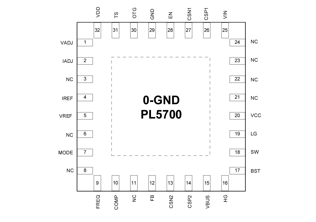 | 32 | VDD | 为PL5700控制核心提供的 5.4V电源 |