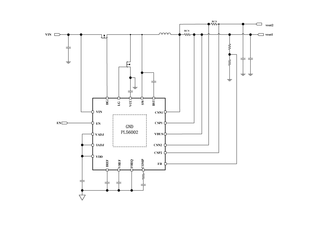 PL56002是一款脉宽调制信号(PWM)控制器,针对输入电压为4.2V到32V的高性能同步降压DC/DC应用而设计。