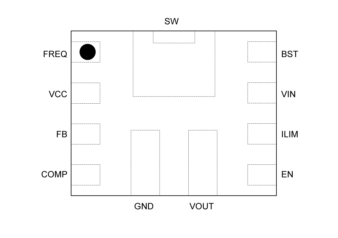 | 1 | FREQ | 开关频率设置,在该脚与SW之间连接电阻设置开关频率 |