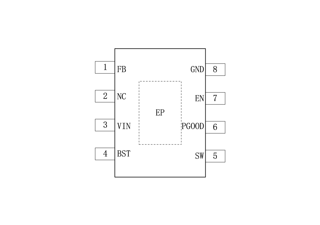 | 5 | SW | 开关节点内部连接到高侧NMOS降压开关的源极和低侧NMOS同步整流器的漏极。连接到功率电感的开关节点。 |