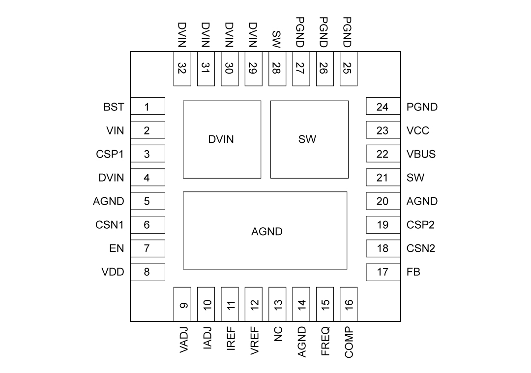 | 5 | AGND | 模拟接地。将PGND和AGND在IC下的热焊盘上连接在一起。 |