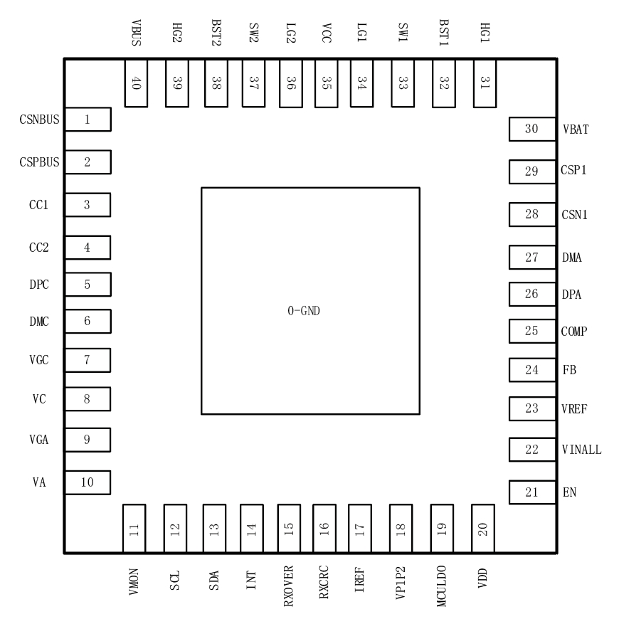 | 40 | VBUS | Power node of the charger. |