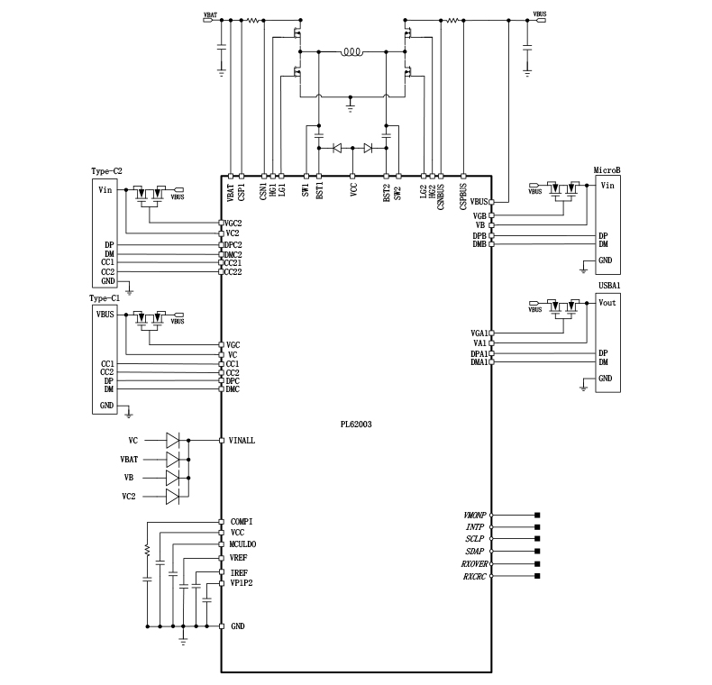 PL62003是一款集成快速充电协议的高效、同步双向升降压充电器
