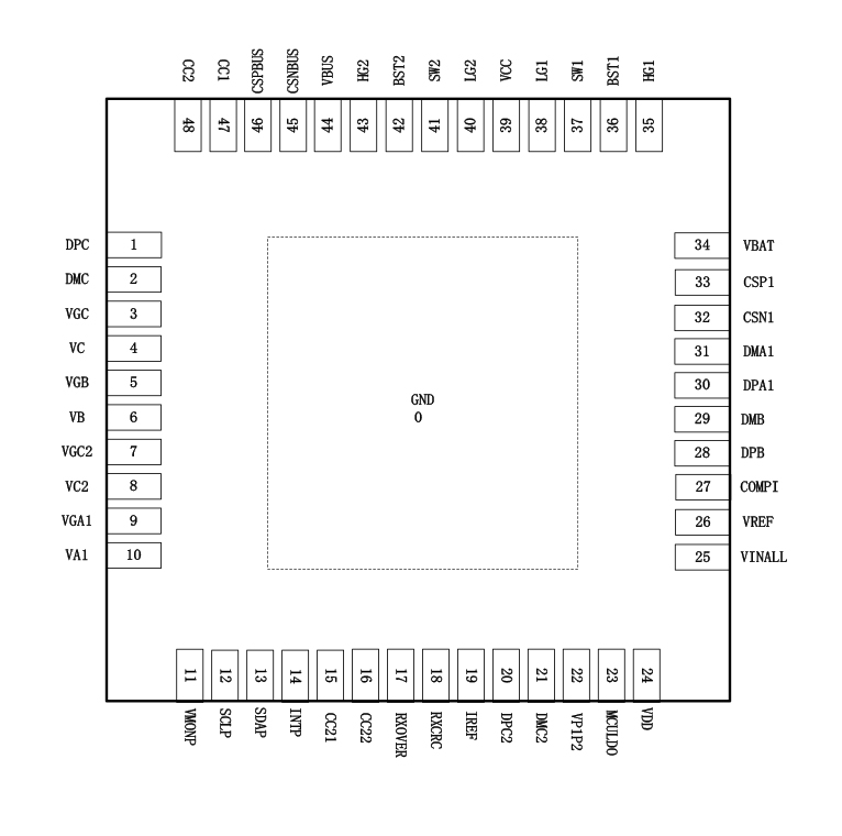 | 44 | VBUS | 充电器的功率节点 |
