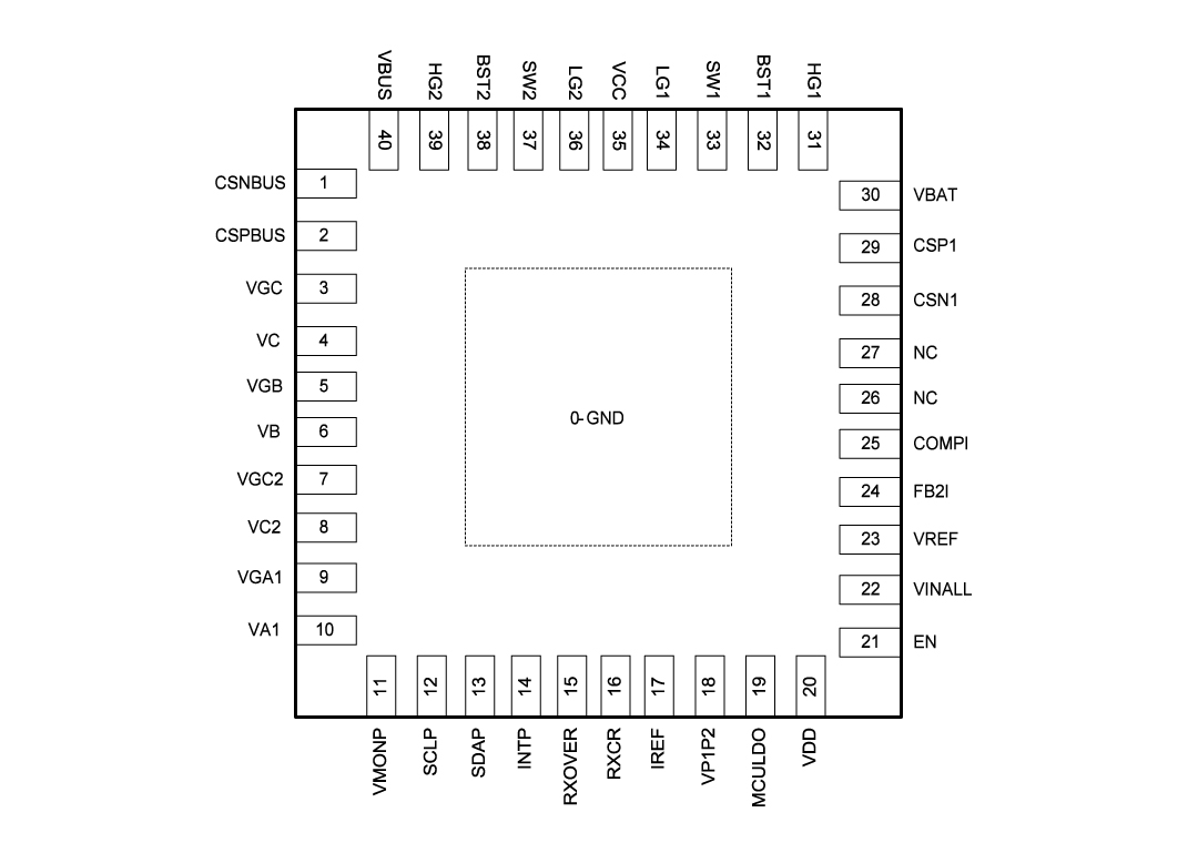 | 40 | VBUS | 充电器的电源节点。 |
