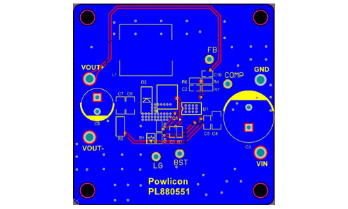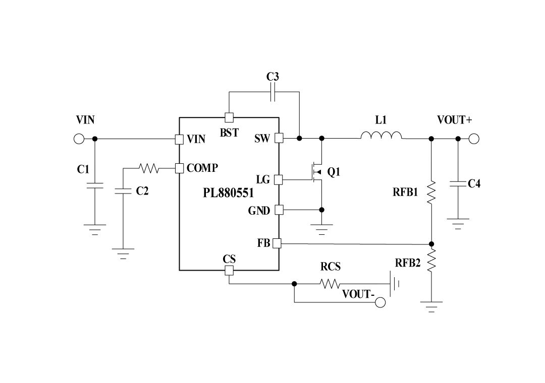 PL880551的其他特点包括超低静态电流和高轻负载效率、创新的峰值电流保护、集成的VCC偏置供电和引导二极管、精确的使能和输入欠压锁定,以及具有自动恢复的热关断保护。