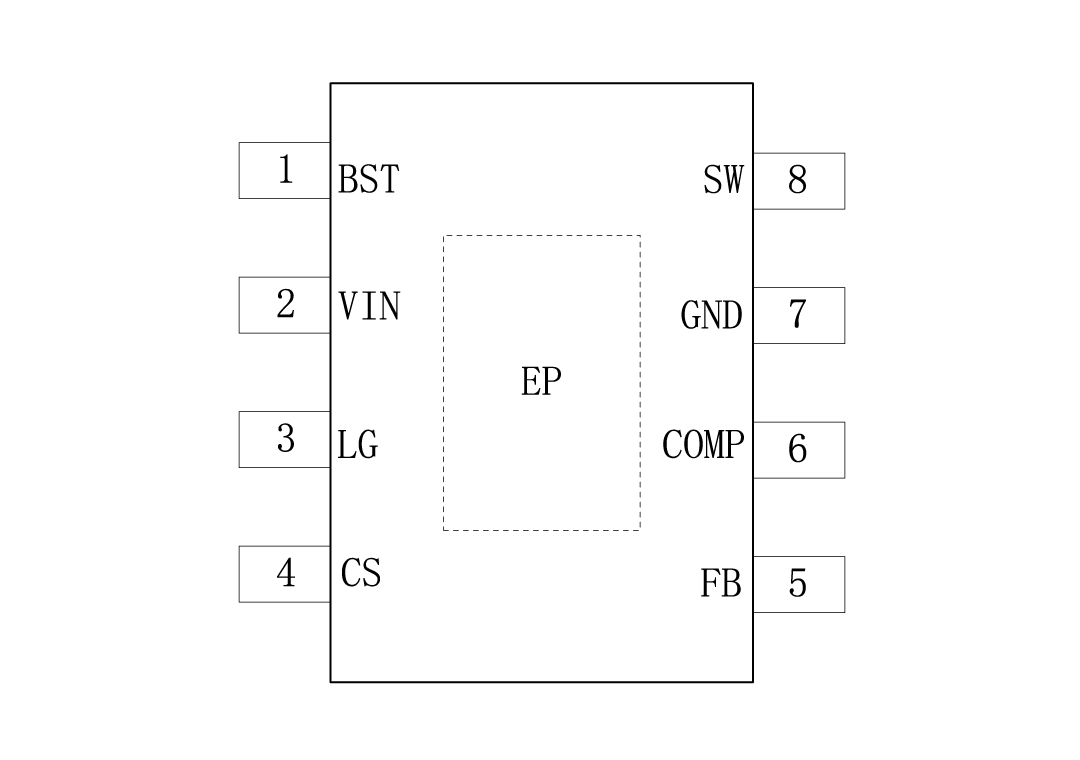 | 9 | EP | 封装的裸露垫片。没有内部电连接。将EP焊接到GND引脚并连接到大型铜平面,以降低热阻。 |