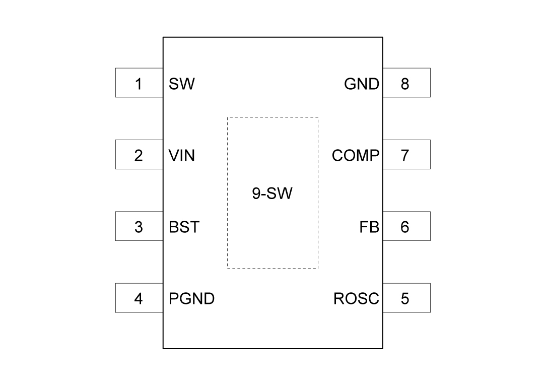 | 9 | SW | 电压切换引脚。将此引脚连接到电感的切换节点。 |