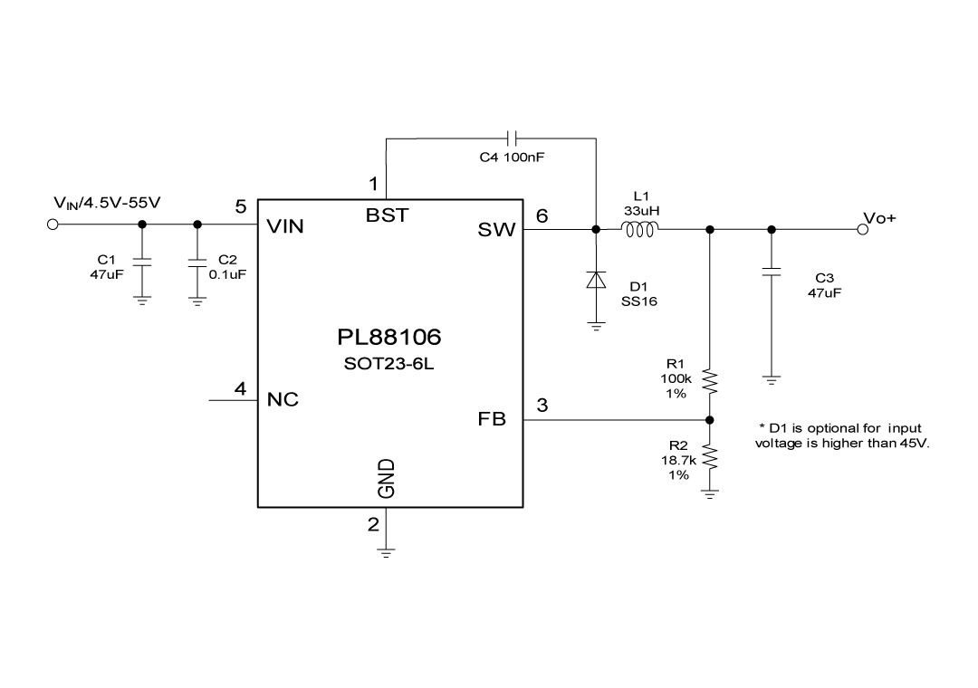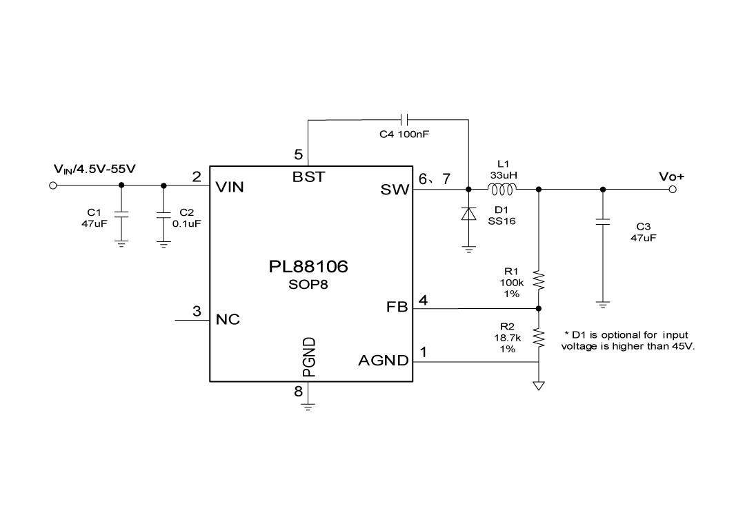 PL88106是一款55V高压同步降压转换器 SOT23-6L封装: SOP8封装:
